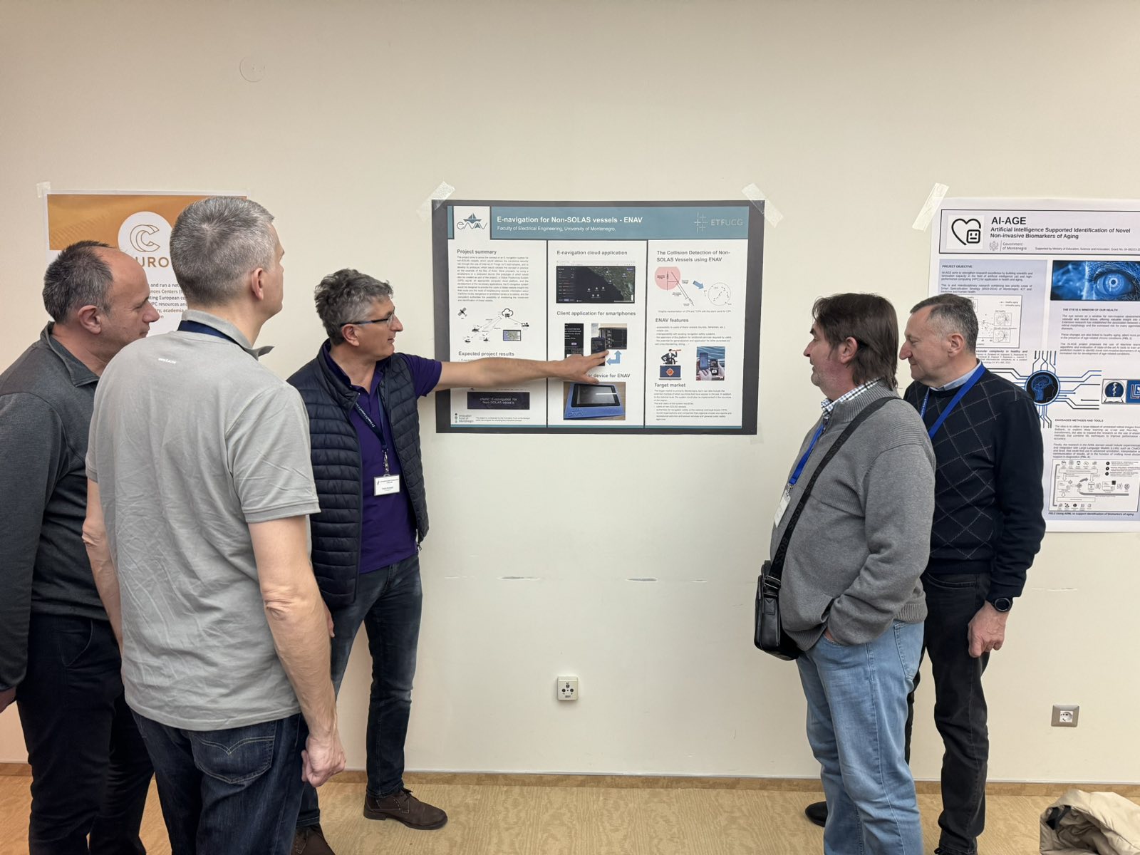 The project "ENAV: e-Navigation for non-SOLAS vessels" was presented at the IT2024 conference, as part of the poster session named "Project Fair and Dissemination of Results", held on Wednesday, February 21, at 5:45 p.m. Project manager, prof. Božo Krstajić and researchers on the project, prof. Milutin Radonjić, and Igor Stanovčić, presented to the participants of the session the main motive and goal of the project, as well as the results achieved so far. The current version of the developed Android application was practically demonstrated and the server side of the application, which visualizes georeferenced vessels using the ENAV application, was shown.